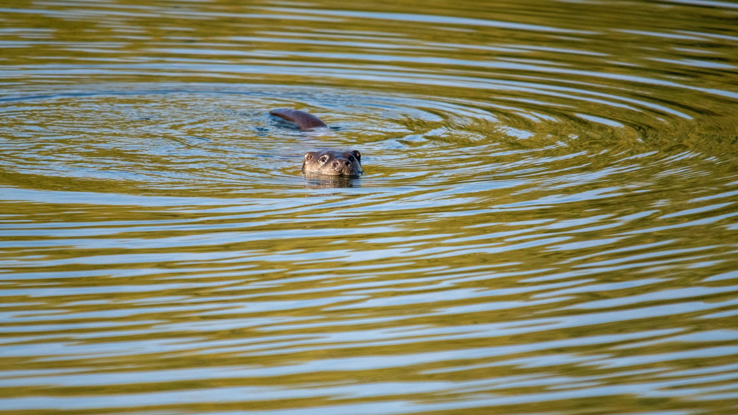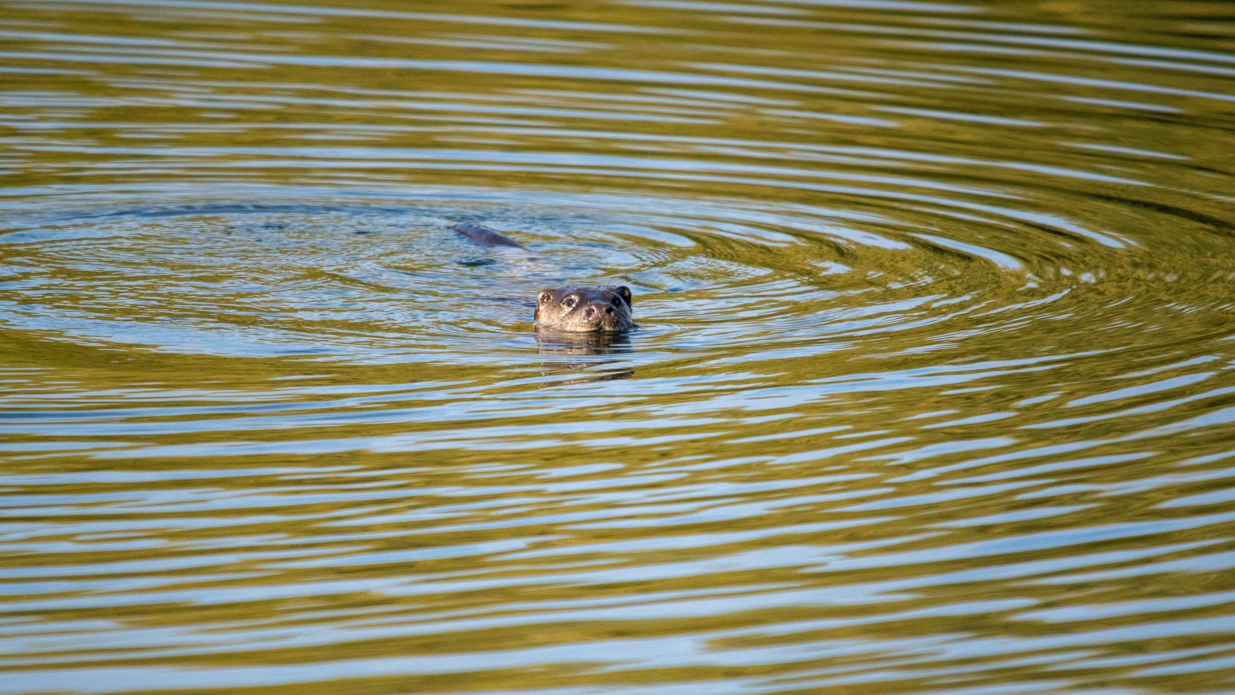 Suddenly, an otter surfaced! I grabbed my camera as quickly and quietly as I could and managed to get the otter in frame, holding down the shutter button. I only got a few shots before it disappeared as quickly as it had appeared.